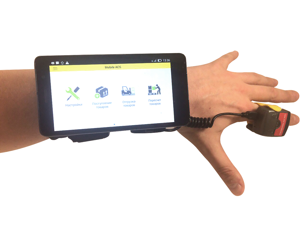 IDZOR WR-1000 ? это специальное крепление на запястье для сканера-кольцо IDZOR R1000, используемый для комфортной работы со штрих-кодами на складах, торговых площадях. Представляет собой крепление на руку для смартфона и комплектуется (дополнительно) сканером-кольцом. Крепление снабжается перезаряжаемой батареей емкостью 3100 или 4000 мАч. Опционально можно заказать WR-1000 без батареи, для тех кому 8 часов работы смартфона хватает.