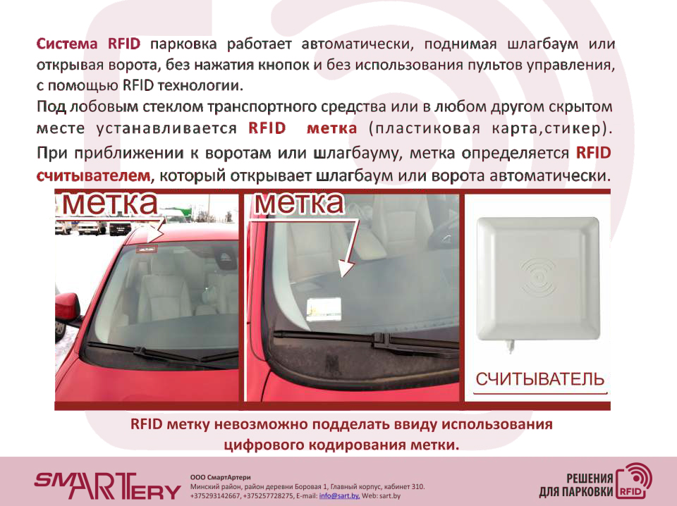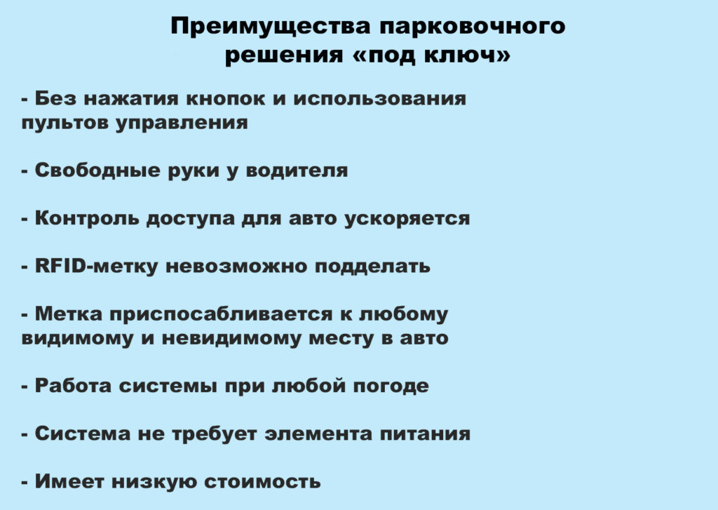 В отличие от ближнепольного парковочного считывателя RFID-система не заставляет водителя авто открывать окно в плохую погоду, чтобы приложить карту-пропуск к сканеру.