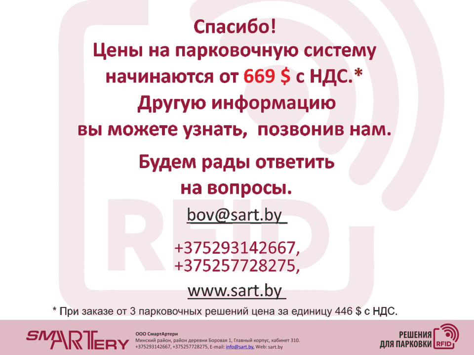 - Заказать эконом-пакет RFID для парковки.